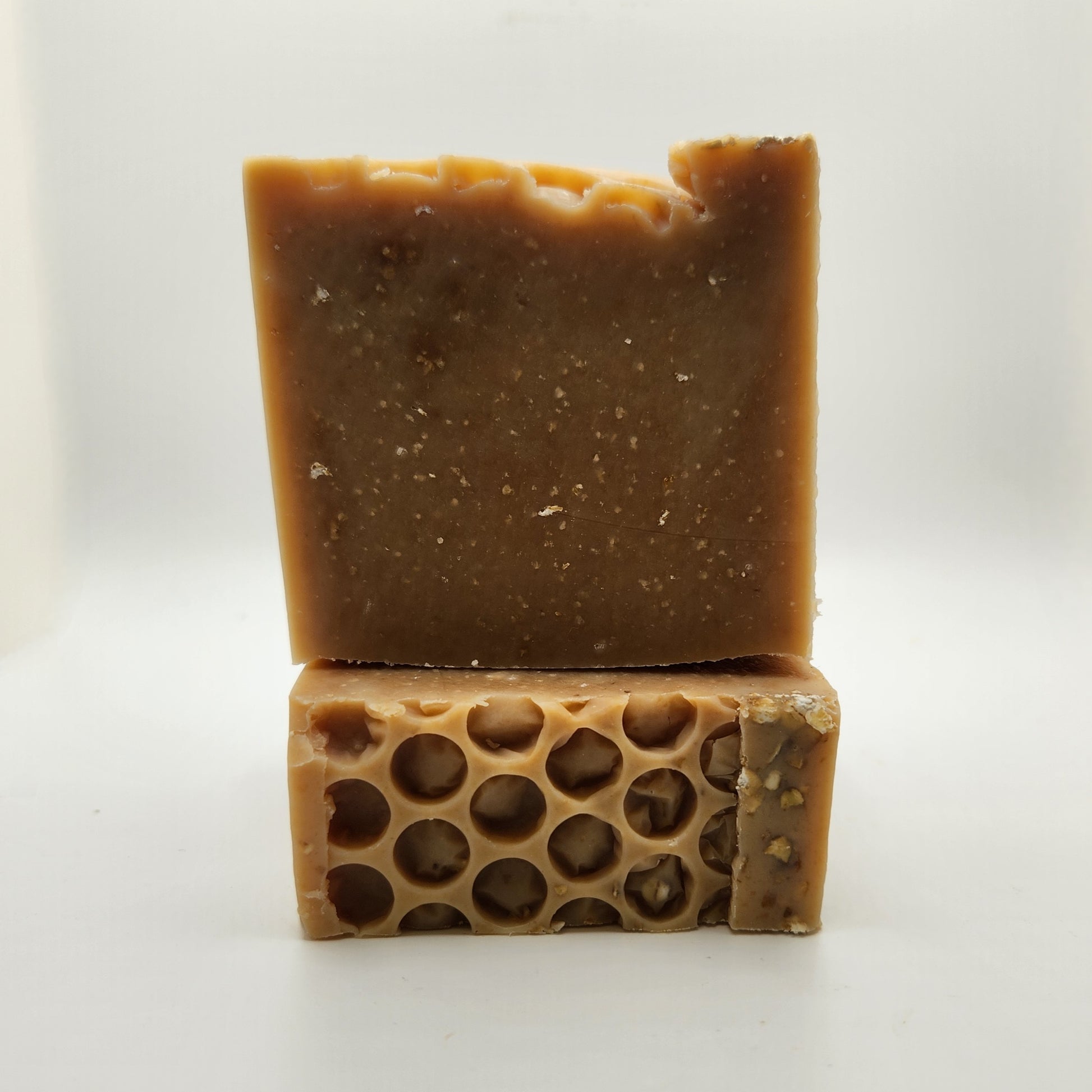A natural bar soap with oatmeal to provide gentle exfoliation and the sweet smell of honey.