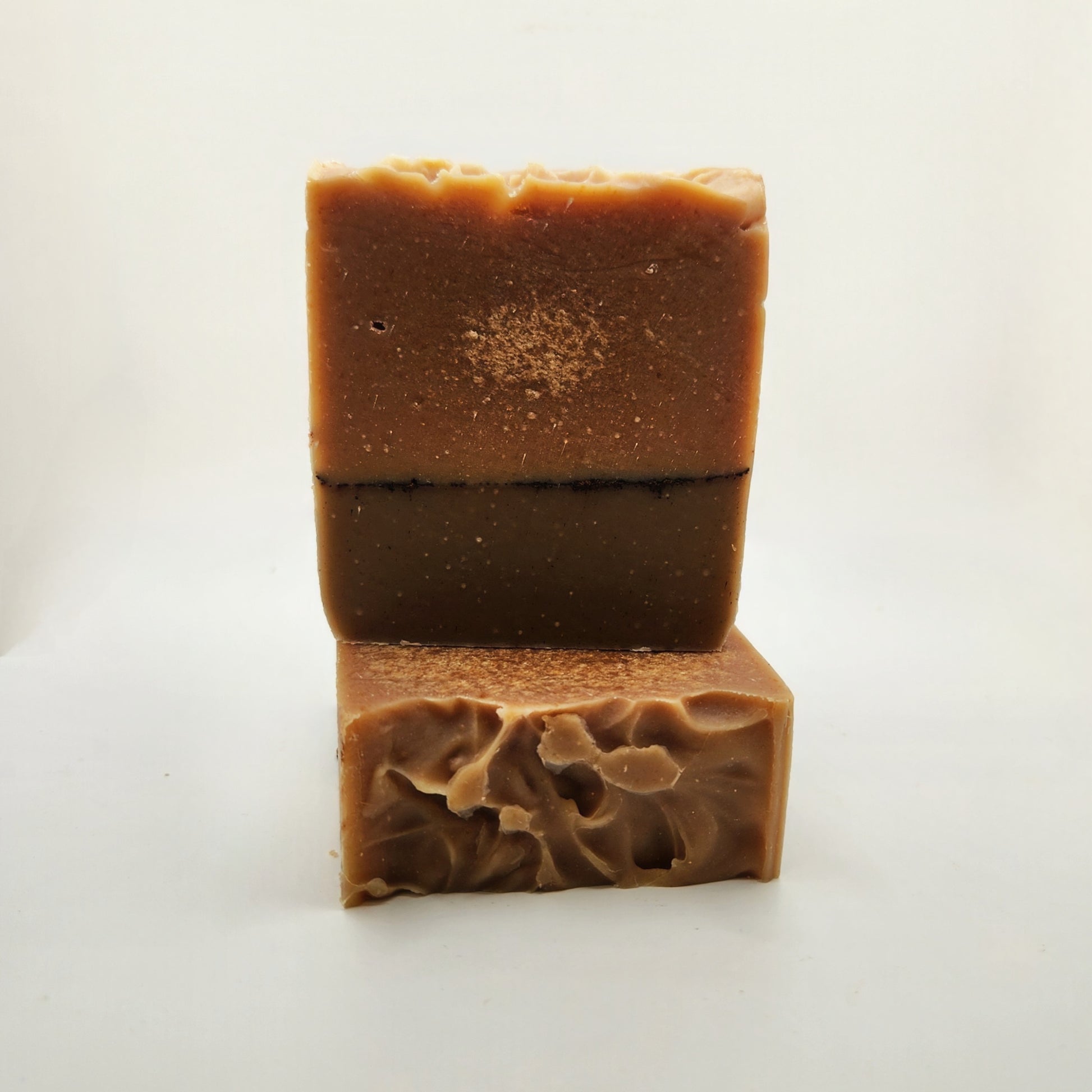 Olive oil, coconut oil, sustainably grown palm oil, fresh goat's milk, sodium hydroxide (lye), castor oil, orange essential oil, cinnamon essential oil, clove essential oil, skin-safe colorant. Learn more here about product ingredients.